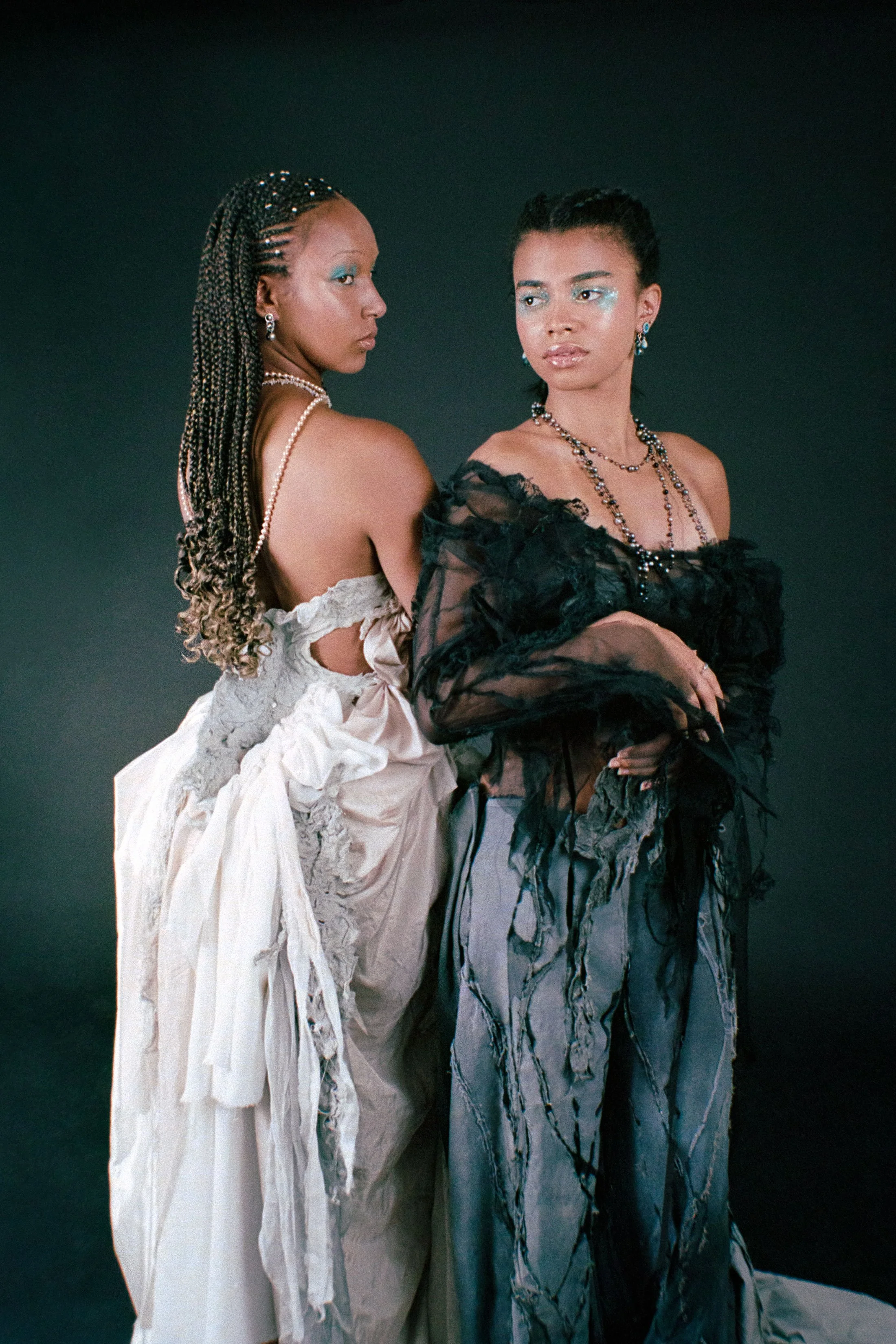Following the theme of mermaids, I wanted to create an infinite deep-sea look surrounding the models, using dark colours to make the clothes and models stand out. I wanted to ensure striking depth but keep an element of reality, blending the real world with fantasy. The models took on the role of sultry and alluring women to be lusted over, forever enhancing the storyline.